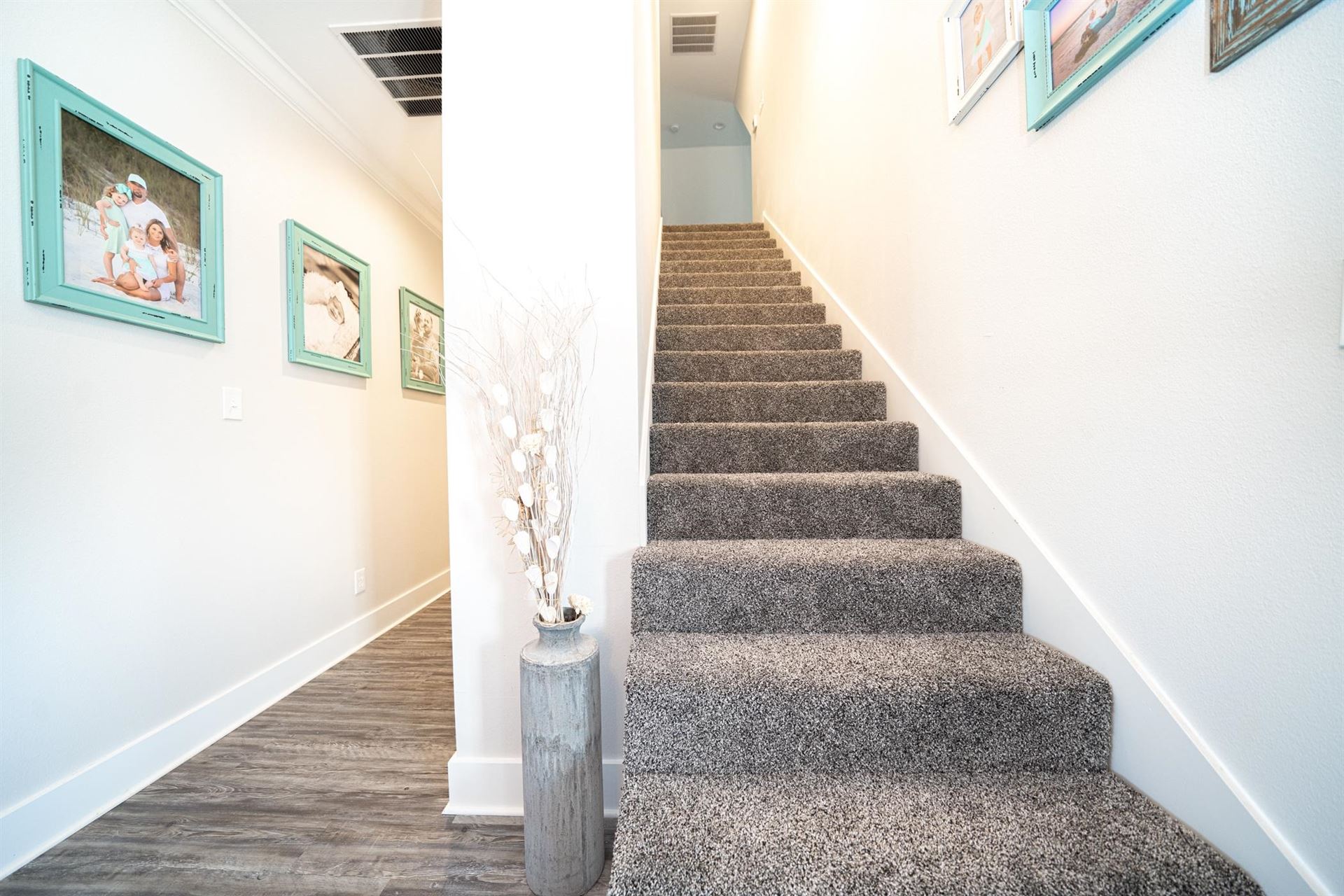 - INTERIOR: Shades/Blinds, Carpeting, Vinyl Flooring, High Ceilings, Ceiling Fan, Blinds, Wired for Networking