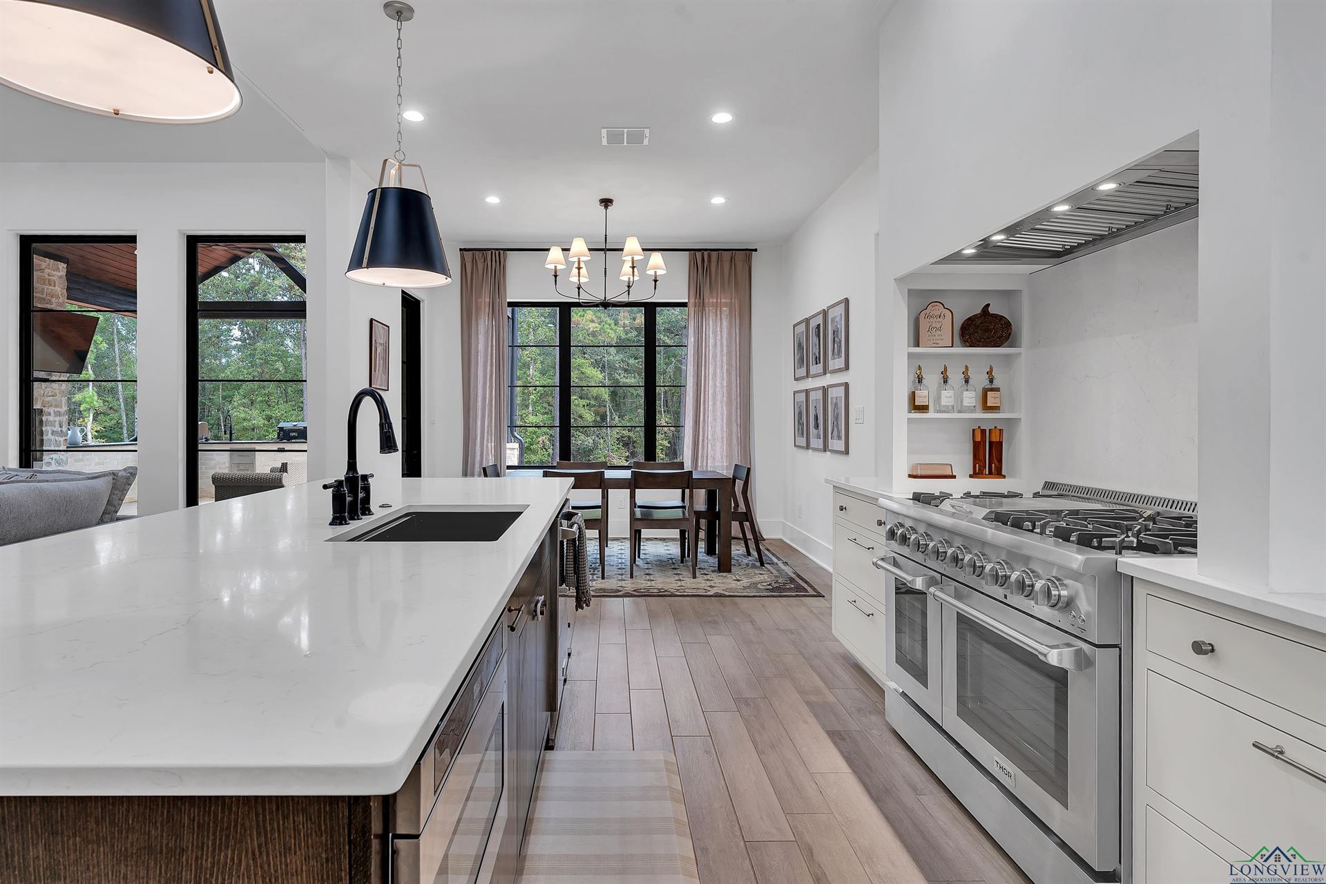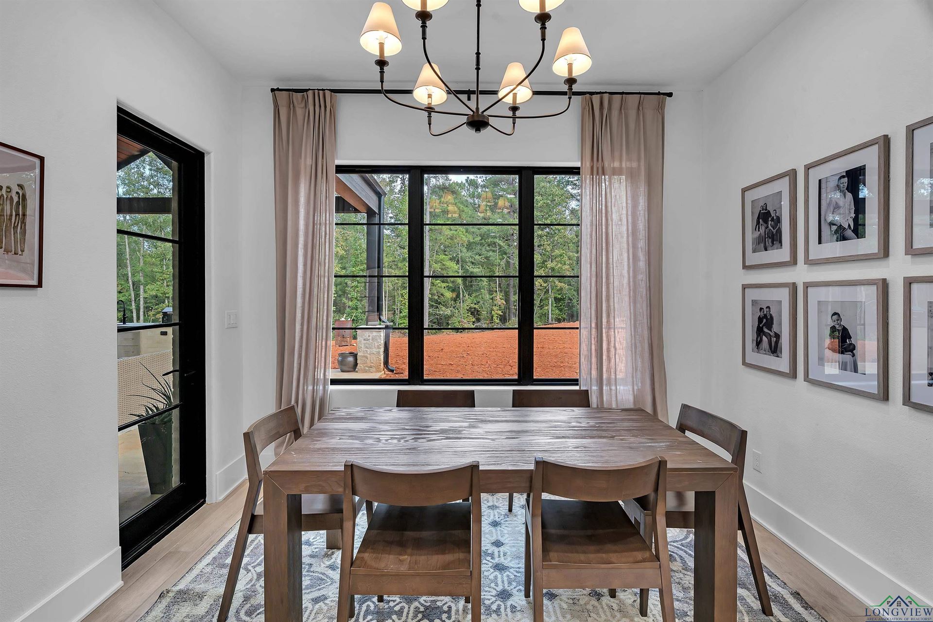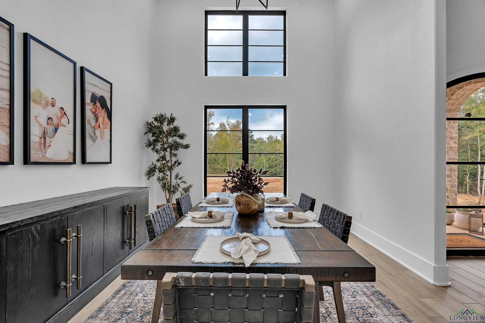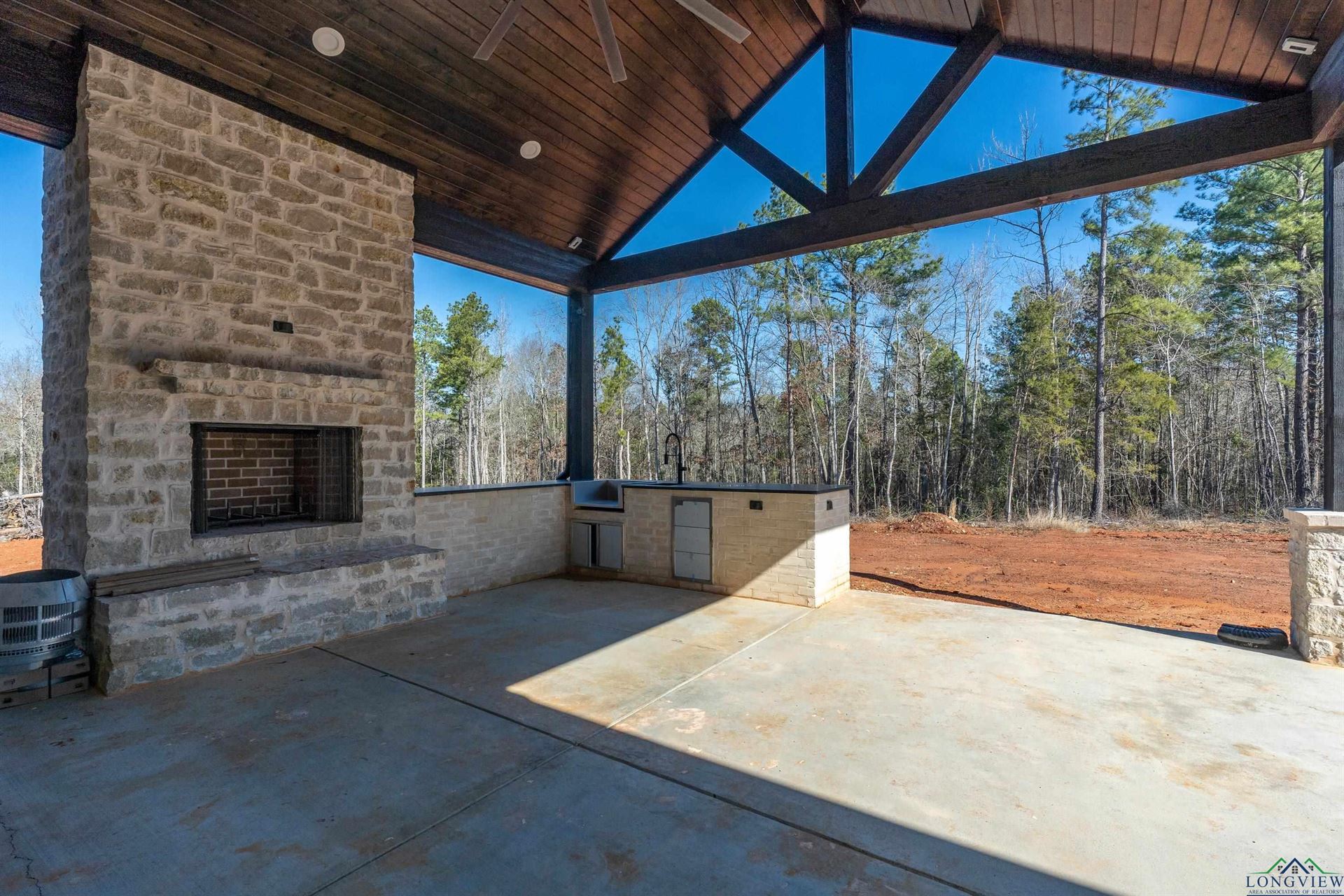 Introducing a breathtaking new construction by JP Customs & designed by Cove Creek Homes, this modern transitional home is set on 15 private acres in the heart of Gilmer ISD. Thoughtfully designed for both elegance and functionality, this 4-bedroom, 3.5-bathroom home offers a seamless blend of luxury and comfort, perfect for those seeking a peaceful country retreat without sacrificing modern conveniences. Step inside to an inviting open layout, where a dining room with picturesque windows showcases the beauty of the surrounding landscape. The kitchen is a chef's dream, complete with a spacious pantry for ample storage and workspace, while a cozy breakfast nook provides the perfect spot for casual dining. A beautifully designed wet bar makes entertaining effortless, adding to the home's sophisticated charm. The primary suite is a true sanctuary, featuring a spa-like master bathroom with exquisite Taj Mahal countertops, creating a serene and luxurious escape. Three additional bedrooms, one having an en-suite bathroom, are thoughtfully designed for comfort and convenience for family and guests. A stylish half bathroom adds extra functionality to the home's layout. For added convenience, the custom-designed laundry room boasts built-in cabinetry for optimal organization, while a dedicated office provides a quiet space for work or study. Step outside to your own private oasis, where a fully equipped grill and cooking area make outdoor entertaining effortless. Whether you're hosting gatherings or simply enjoying the peace this home has to offer, this space is perfect for making memories. Situated on 15 acres of private countryside, this exceptional property offers the perfect balance of tranquility and convenience. Whether you're looking to enjoy wide-open spaces or entertain in a beautifully crafted home, this masterpiece is an opportunity you won't want to miss!