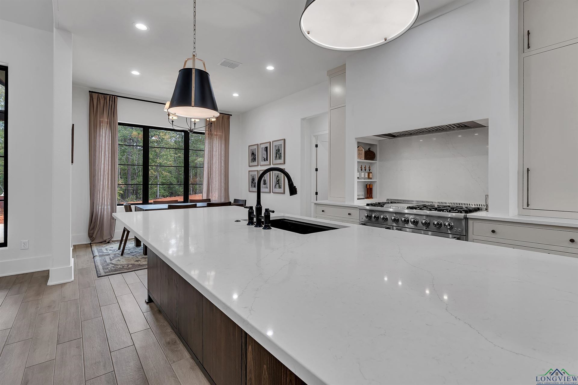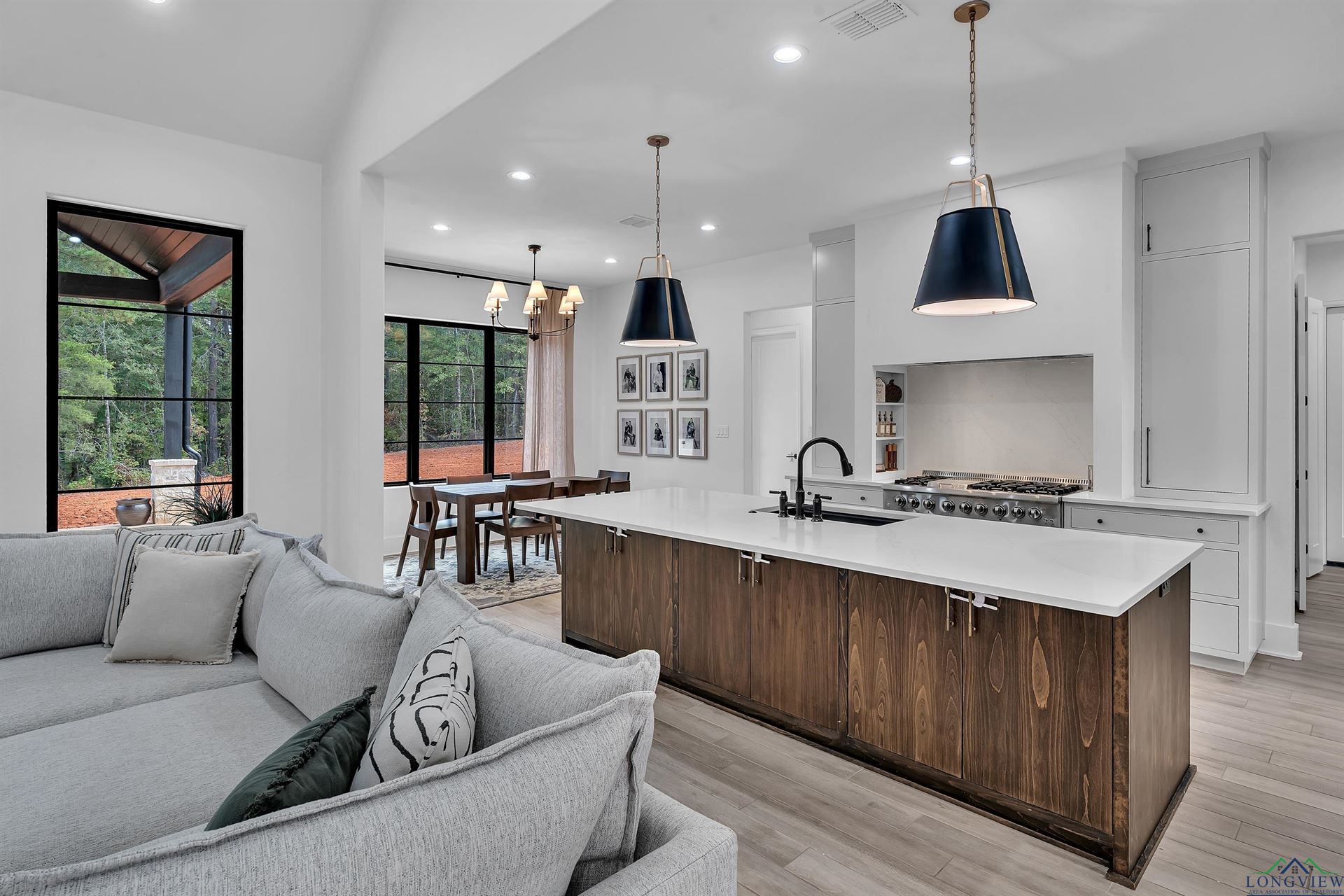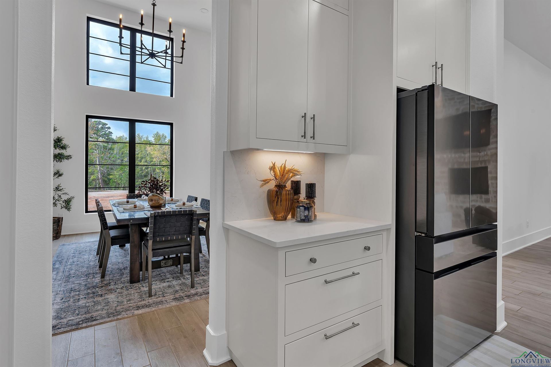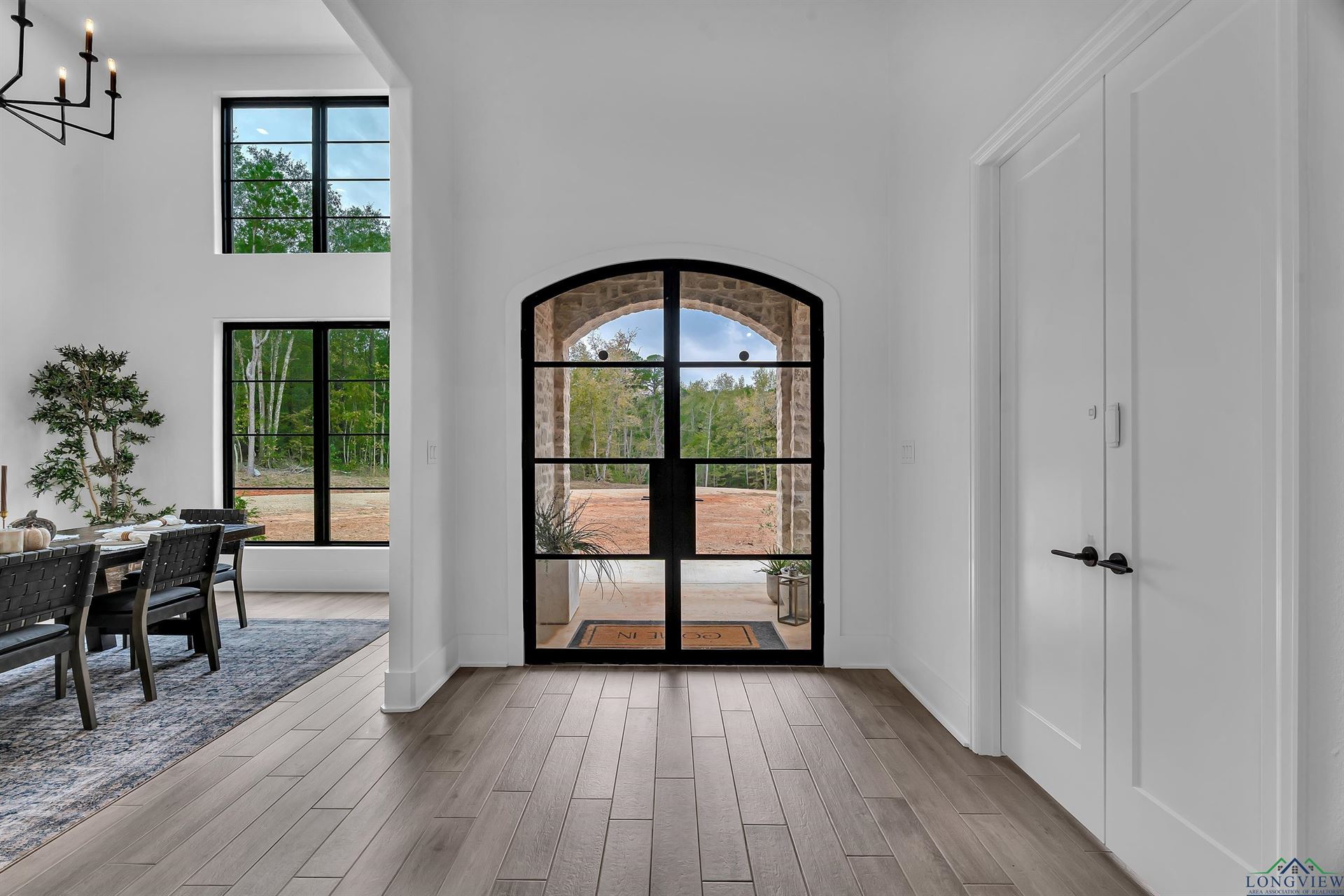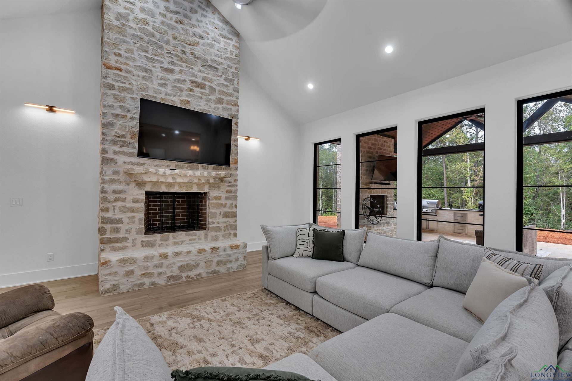 Introducing a breathtaking new construction by JP Customs & designed by Cove Creek Homes, this modern transitional home is set on 15 private acres in the heart of Gilmer ISD. Thoughtfully designed for both elegance and functionality, this 4-bedroom, 3.5-bathroom home offers a seamless blend of luxury and comfort, perfect for those seeking a peaceful country retreat without sacrificing modern conveniences. Step inside to an inviting open layout, where a dining room with picturesque windows showcases the beauty of the surrounding landscape. The kitchen is a chef's dream, complete with a spacious pantry for ample storage and workspace, while a cozy breakfast nook provides the perfect spot for casual dining. A beautifully designed wet bar makes entertaining effortless, adding to the home's sophisticated charm. The primary suite is a true sanctuary, featuring a spa-like master bathroom with exquisite Taj Mahal countertops, creating a serene and luxurious escape. Three additional bedrooms, one having an en-suite bathroom, are thoughtfully designed for comfort and convenience for family and guests. A stylish half bathroom adds extra functionality to the home's layout. For added convenience, the custom-designed laundry room boasts built-in cabinetry for optimal organization, while a dedicated office provides a quiet space for work or study. Step outside to your own private oasis, where a fully equipped grill and cooking area make outdoor entertaining effortless. Whether you're hosting gatherings or simply enjoying the peace this home has to offer, this space is perfect for making memories. Situated on 15 acres of private countryside, this exceptional property offers the perfect balance of tranquility and convenience. Whether you're looking to enjoy wide-open spaces or entertain in a beautifully crafted home, this masterpiece is an opportunity you won't want to miss!