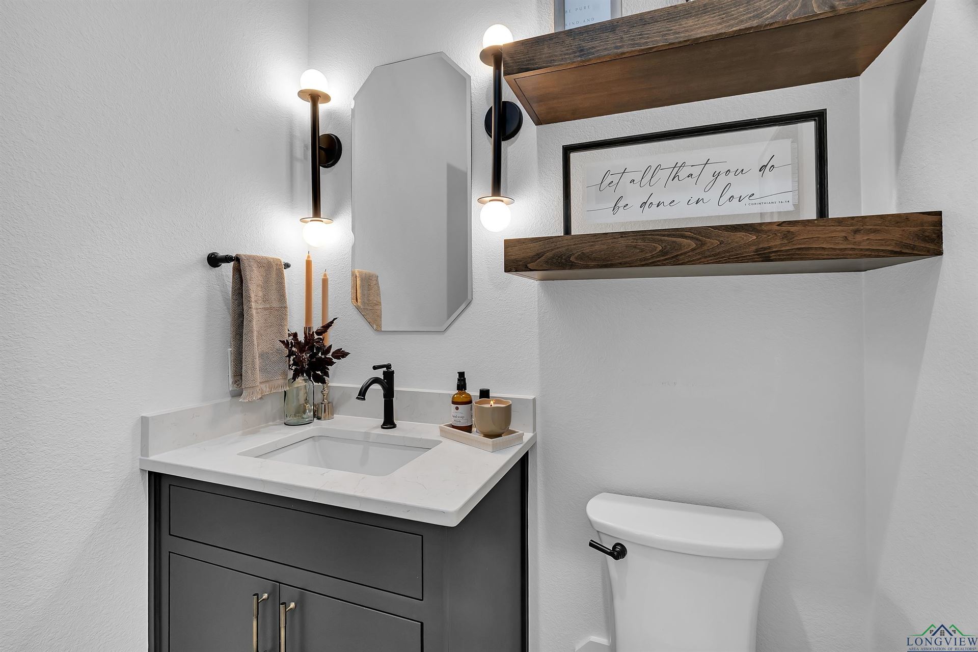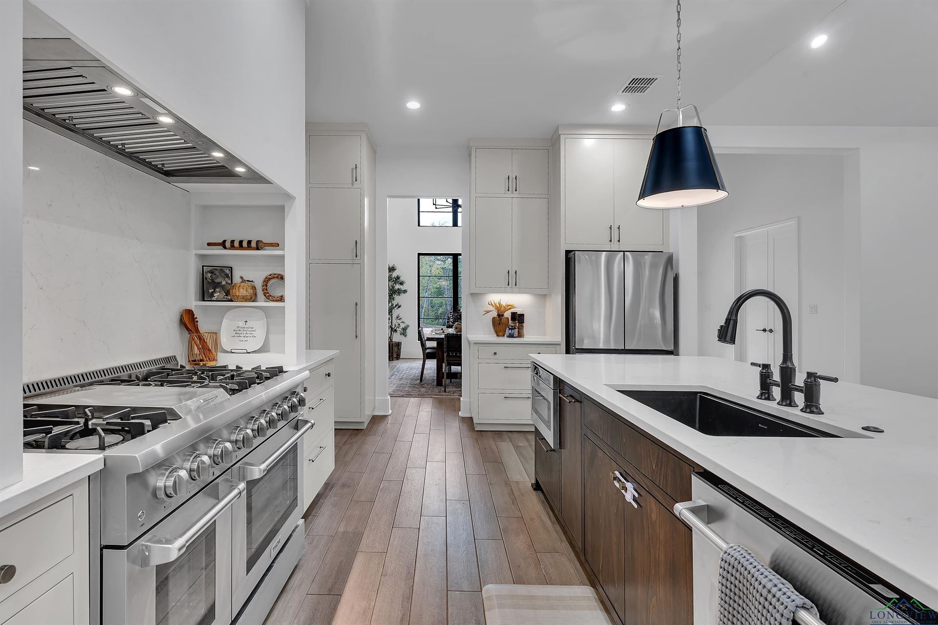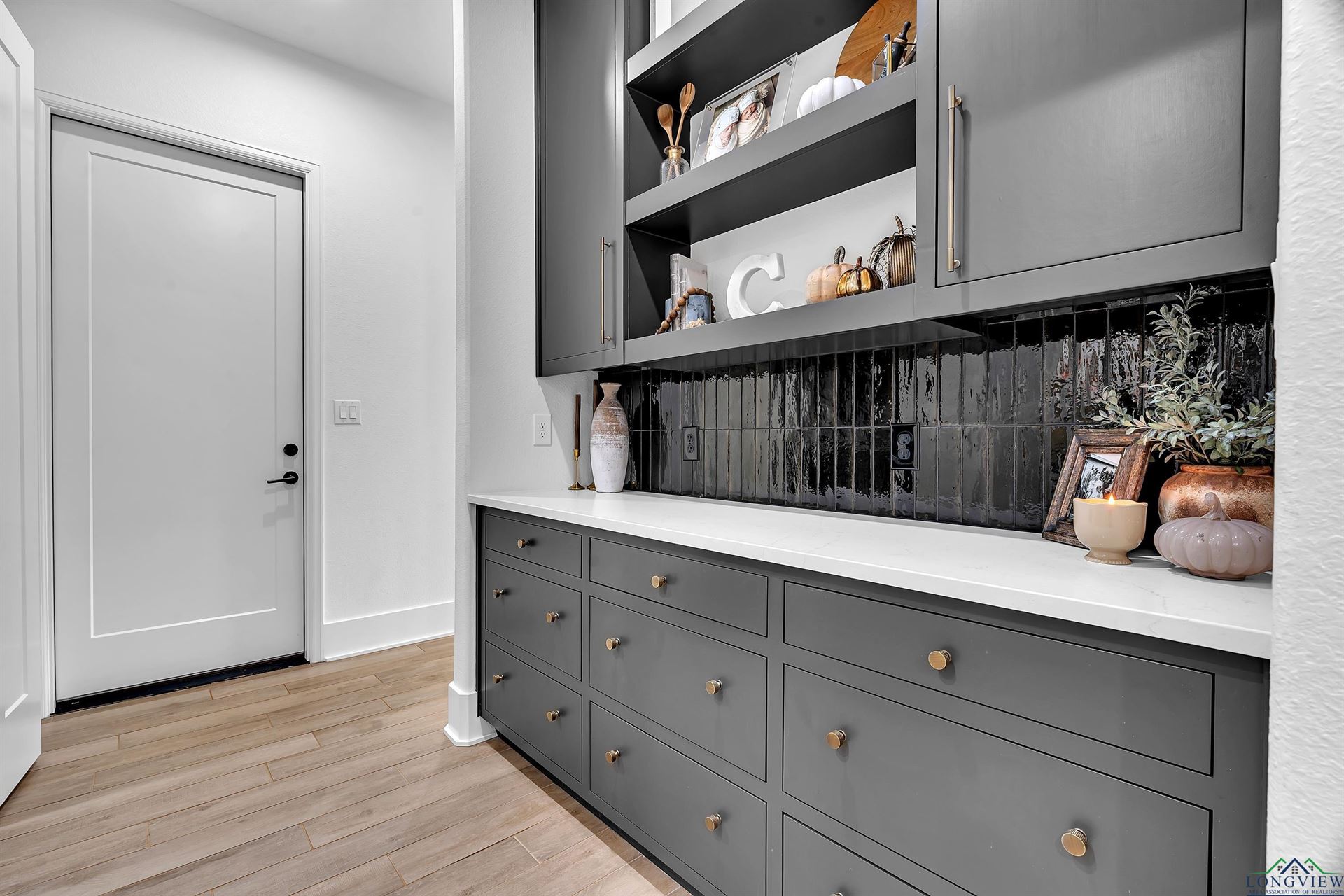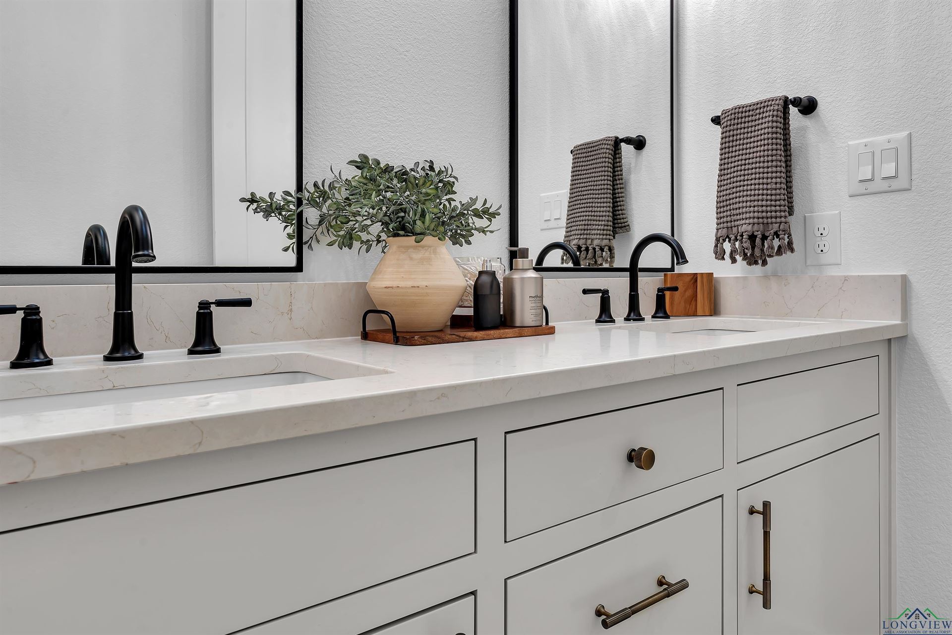 Introducing a breathtaking new construction by JP Customs & designed by Cove Creek Homes, this modern transitional home is set on 15 private acres in the heart of Gilmer ISD. Thoughtfully designed for both elegance and functionality, this 4-bedroom, 3.5-bathroom home offers a seamless blend of luxury and comfort, perfect for those seeking a peaceful country retreat without sacrificing modern conveniences. Step inside to an inviting open layout, where a dining room with picturesque windows showcases the beauty of the surrounding landscape. The kitchen is a chef's dream, complete with a spacious pantry for ample storage and workspace, while a cozy breakfast nook provides the perfect spot for casual dining. A beautifully designed wet bar makes entertaining effortless, adding to the home's sophisticated charm. The primary suite is a true sanctuary, featuring a spa-like master bathroom with exquisite Taj Mahal countertops, creating a serene and luxurious escape. Three additional bedrooms, one having an en-suite bathroom, are thoughtfully designed for comfort and convenience for family and guests. A stylish half bathroom adds extra functionality to the home's layout. For added convenience, the custom-designed laundry room boasts built-in cabinetry for optimal organization, while a dedicated office provides a quiet space for work or study. Step outside to your own private oasis, where a fully equipped grill and cooking area make outdoor entertaining effortless. Whether you're hosting gatherings or simply enjoying the peace this home has to offer, this space is perfect for making memories. Situated on 15 acres of private countryside, this exceptional property offers the perfect balance of tranquility and convenience. Whether you're looking to enjoy wide-open spaces or entertain in a beautifully crafted home, this masterpiece is an opportunity you won't want to miss!