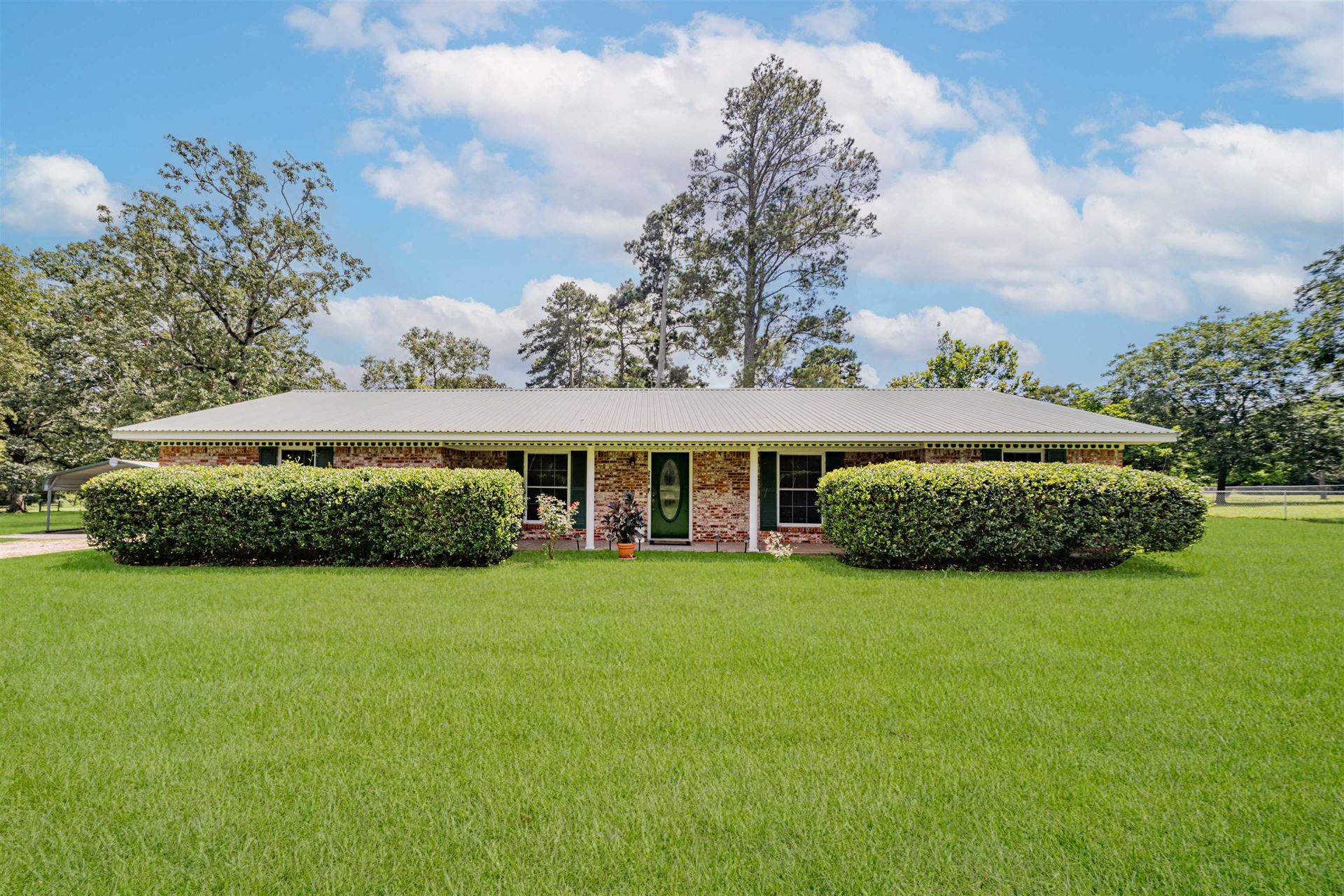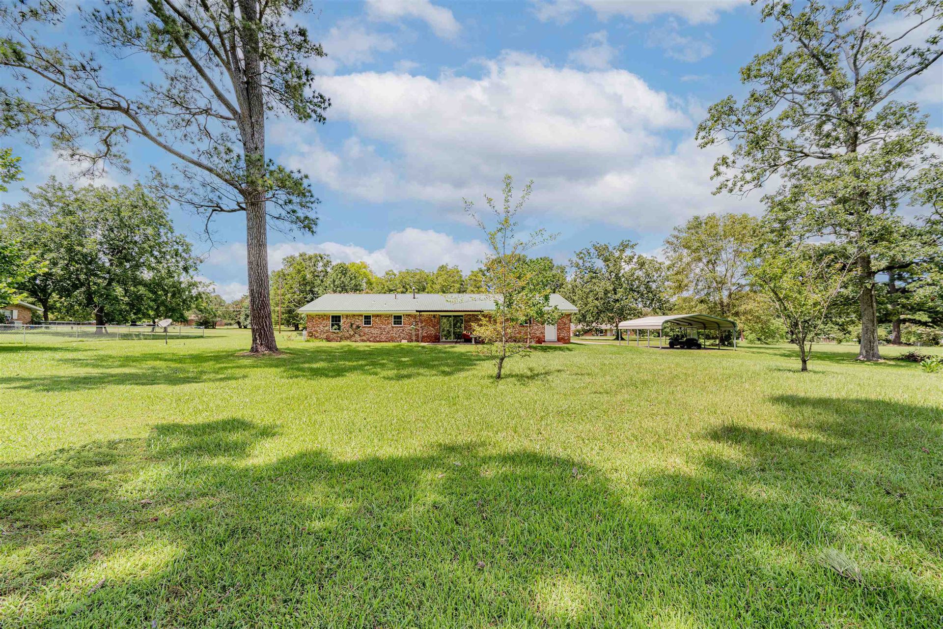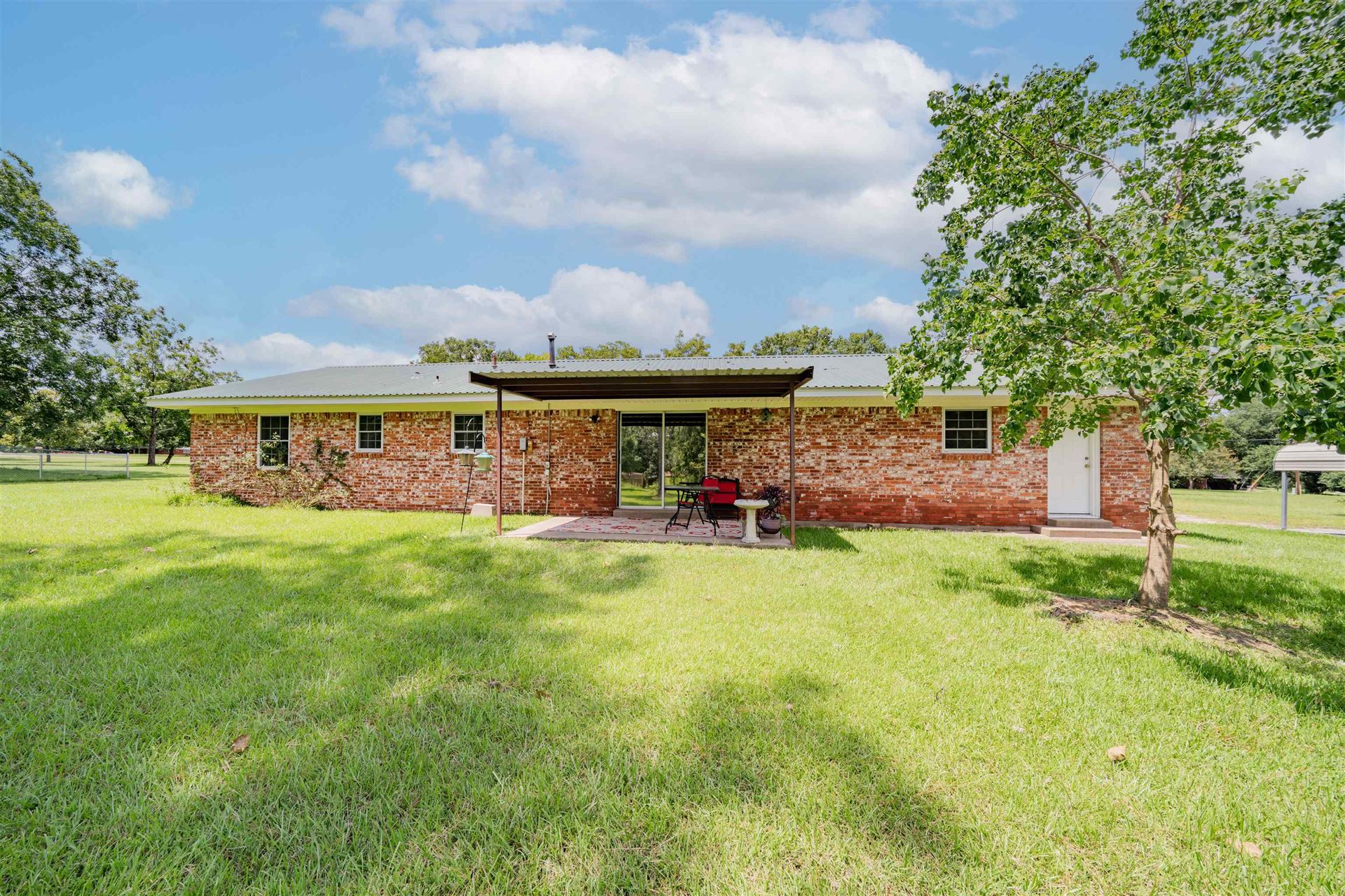 Nice 3 bedroom, 2 bath with formal living room (or dining, office, etc, not shown is photos. Open den and kitchen with granite counters. Utility is off kitchen. Spacious hall bathroom serves 2 guest bedrooms and primary has it's own walk-in closet and bathroom. Well maintained on 1 acre lot in quiet neighborhood. Award winning Hallsville ISD!