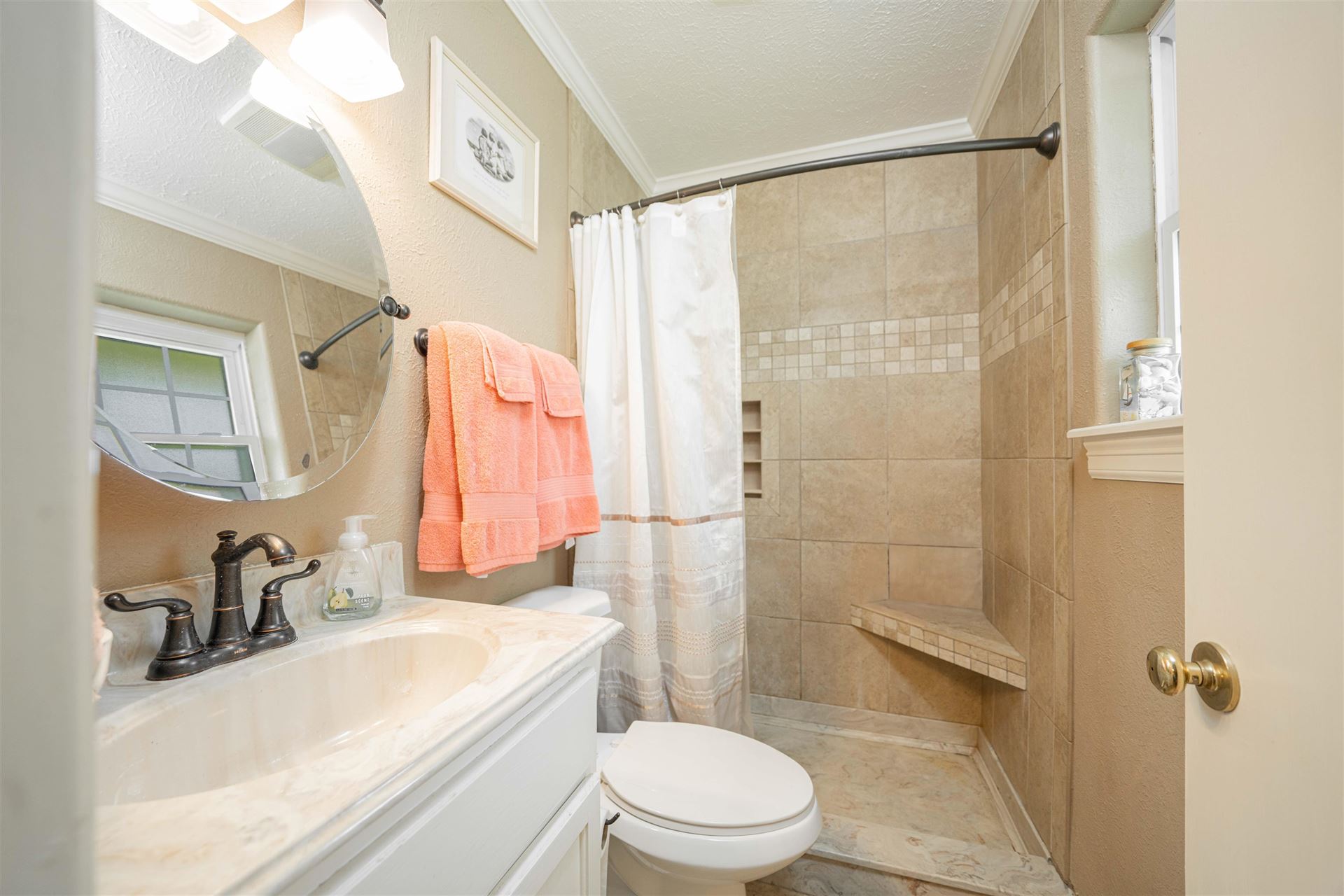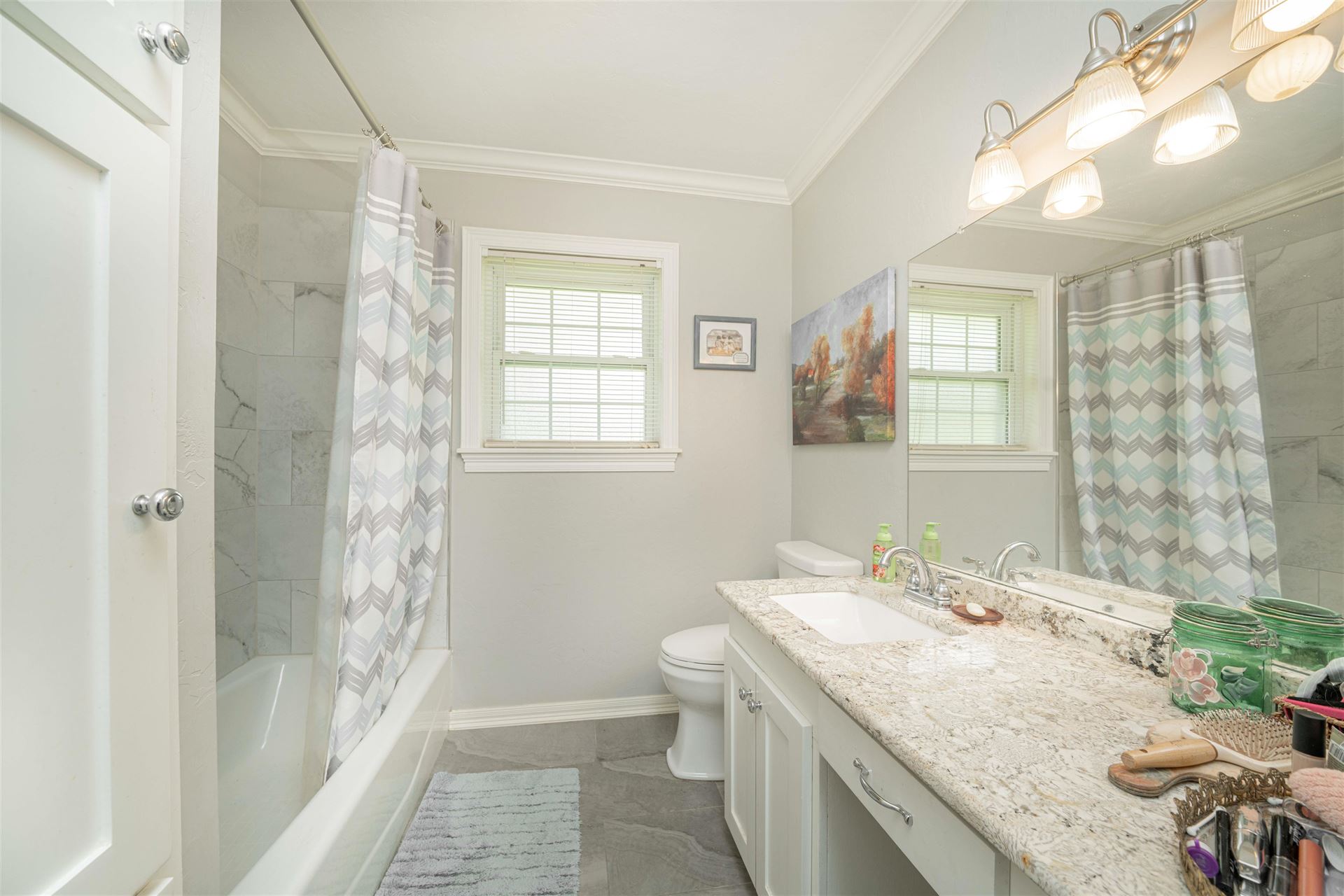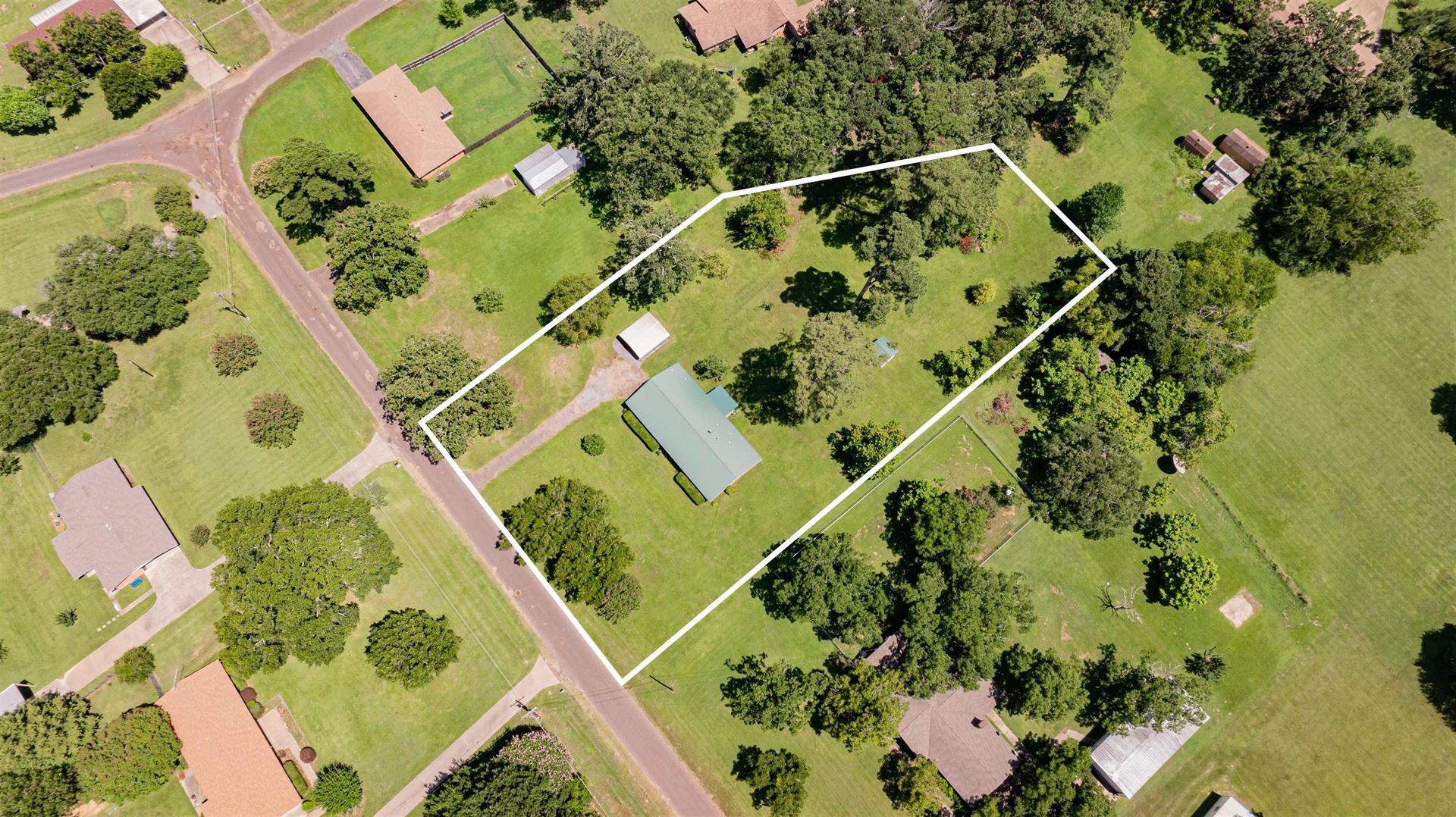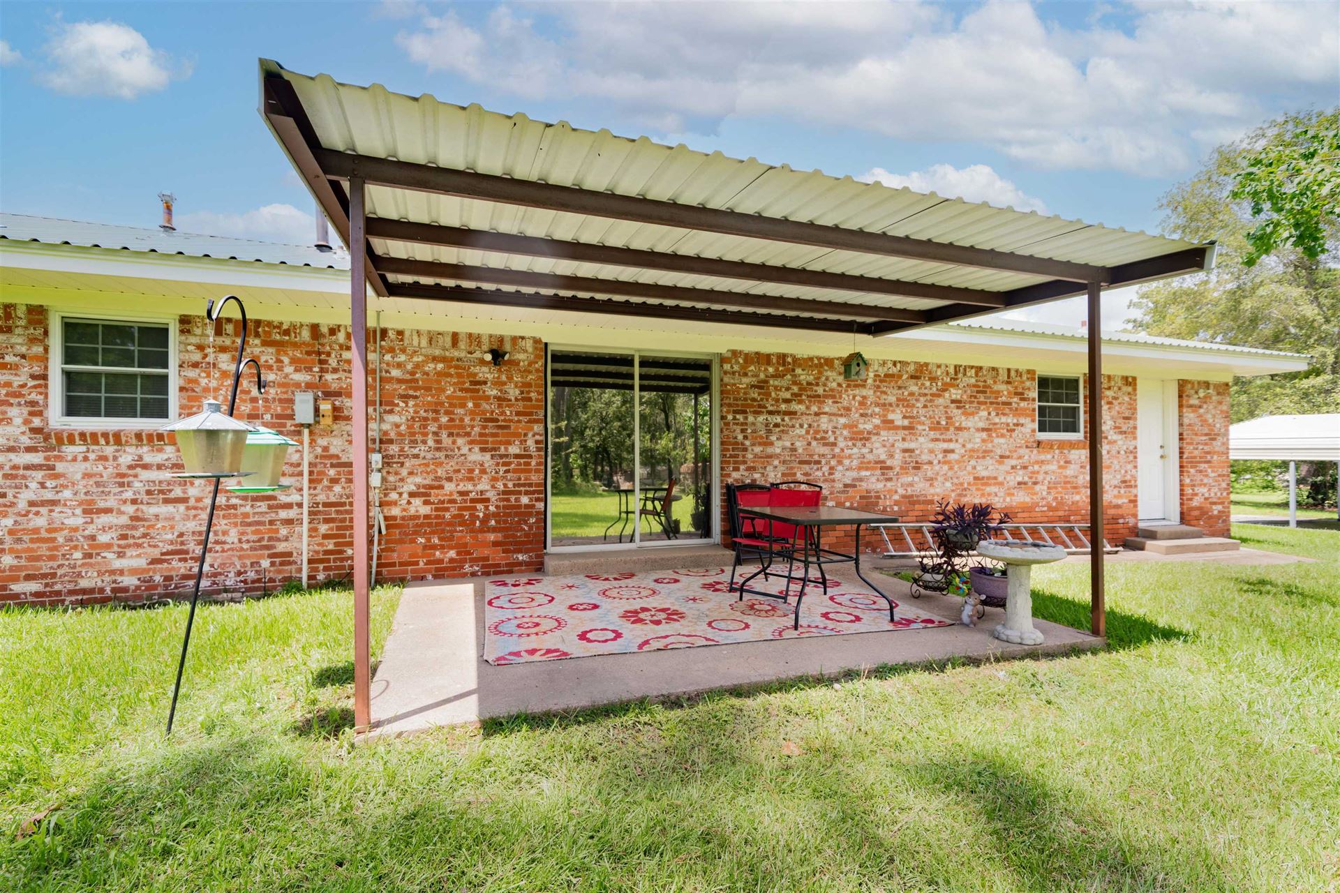Nice 3 bedroom, 2 bath with formal living room (or dining, office, etc, not shown is photos. Open den and kitchen with granite counters. Utility is off kitchen. Spacious hall bathroom serves 2 guest bedrooms and primary has it's own walk-in closet and bathroom. Well maintained on 1 acre lot in quiet neighborhood. Award winning Hallsville ISD!