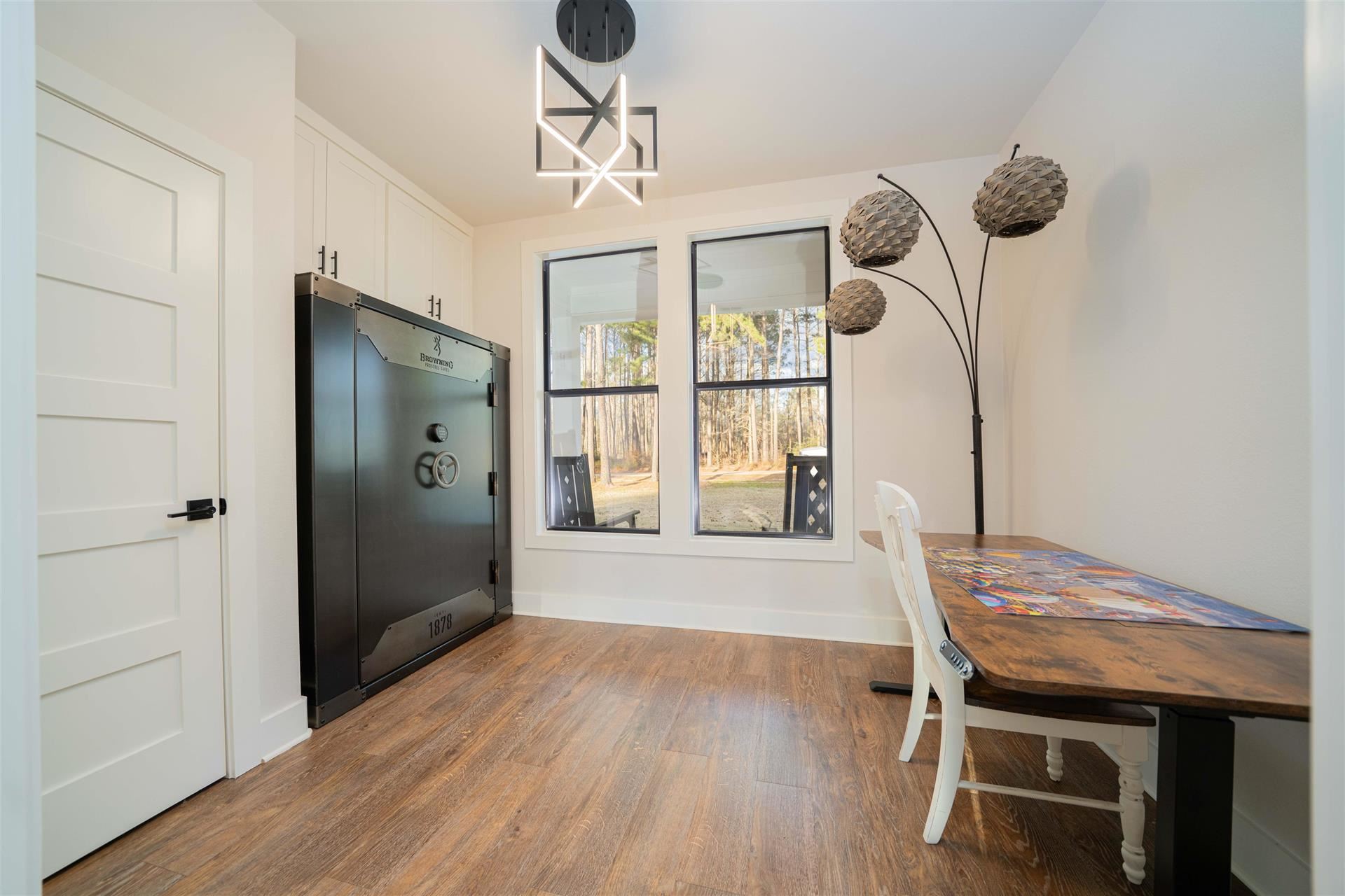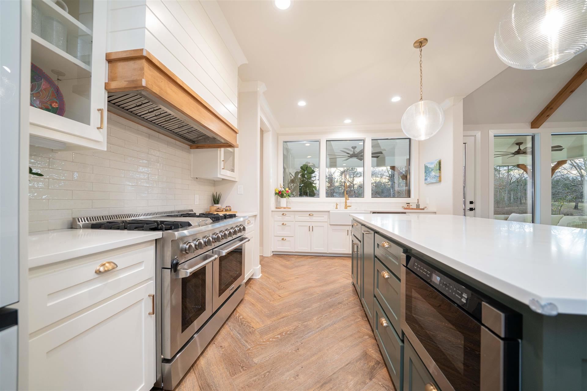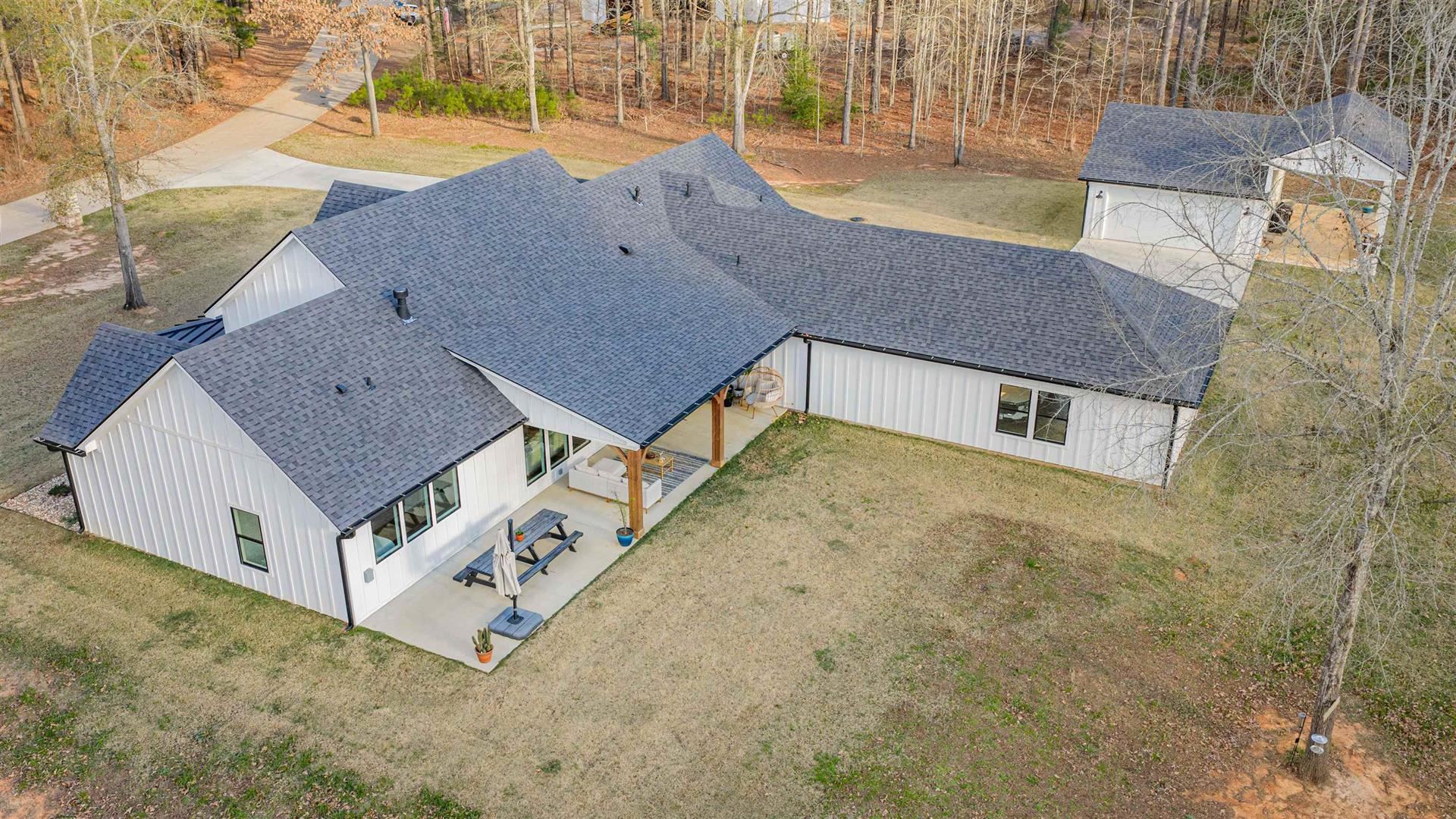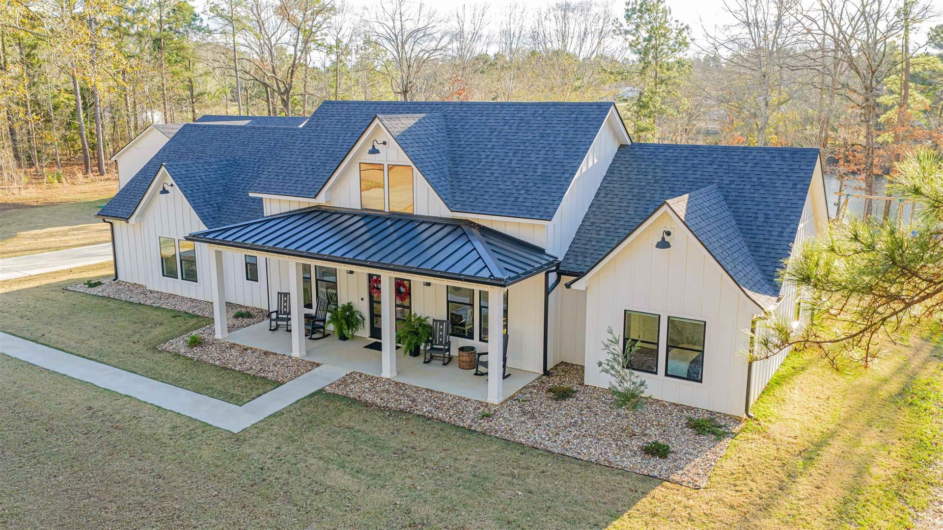 An exceptional opportunity to own a nearly new, custom - quality modern home by JMA Design, on 5 private acres within a gated community, offering refined design, flexibility and East Texas serenity just minutes from Longview and surrounding communities of Kilgore, Henderson, Lake Cherokee! Built only 2 years ago, this thoughtfully designed home offers 2888 sq. ft of heated/cooled living space, featuring a vaulted ceiling and floor-to-ceiling stone gas fireplace that anchors the open living area and includes a ventilation system above mounted television. Custom cabinetry is built throughout the entire home, providing elevated craftsmanship, abundant storage and timeless appeal. The flexible floor plan includes 4 bedrooms or 3 bedrooms with a generous bonus room, a dedicated office and 3 full bathrooms. The floorplan is ideal for families, guests or those working from home. The layout offers both openness and privacy, making it well suited for living/entertaining. The primary suite is oversized and leads into a spacious bath with large shower, bathtub, separate vanity areas and an extra-large closet, designed for 2 people! Outdoors, the property delivers a rare lifestyle experience with 5 private acres, a large pond (shared with1 other home on opposite side of pond), a fully equipped shop and an RV cover with full hookups. The covered back porch of home has gas hookups and 50-amp plug, perfect for a hot tub. Full home generator is 24KW Generac and runs off propane. Whether hosting gatherings, enjoying quiet evenings by the water, fishing, pursing hobbies, etc, the land offers both beauty and function. Located outside city limits within a gated community, this property offers the benefits of privacy and fewer restrictions while remaining conveniently close to Longview and Kilgore.