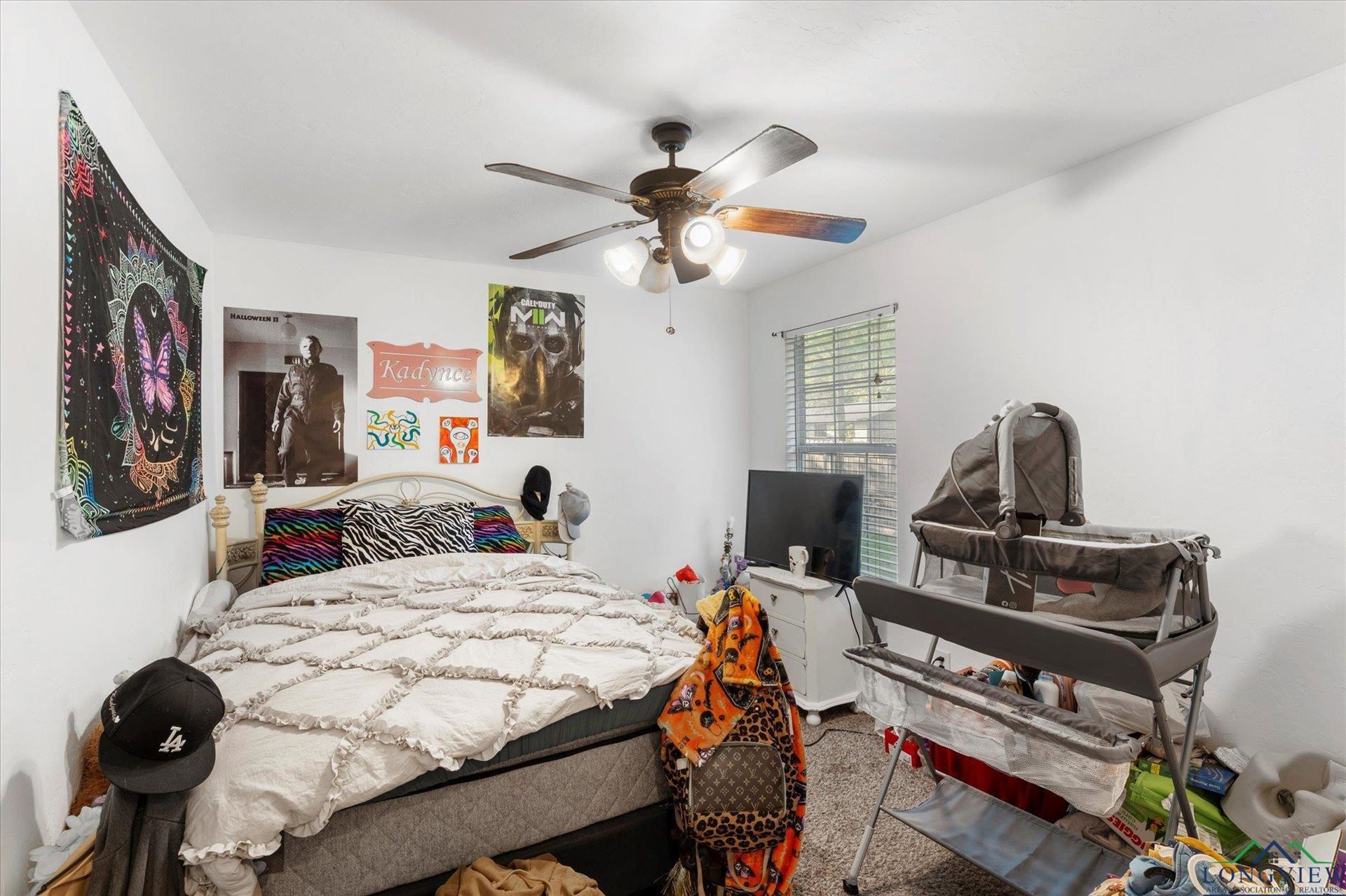 - INTERIOR: Shades/Blinds, Carpeting, Tile Flooring