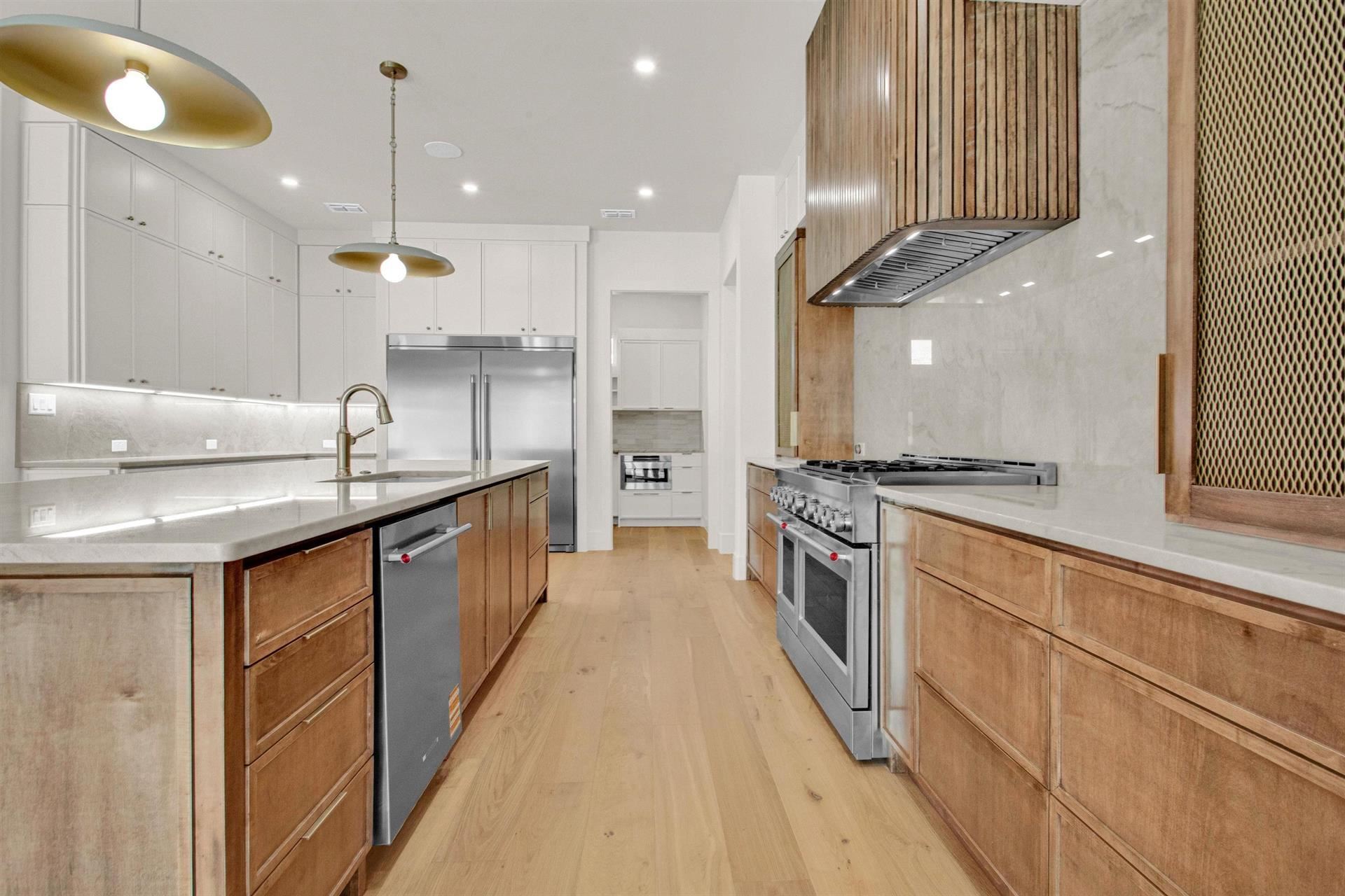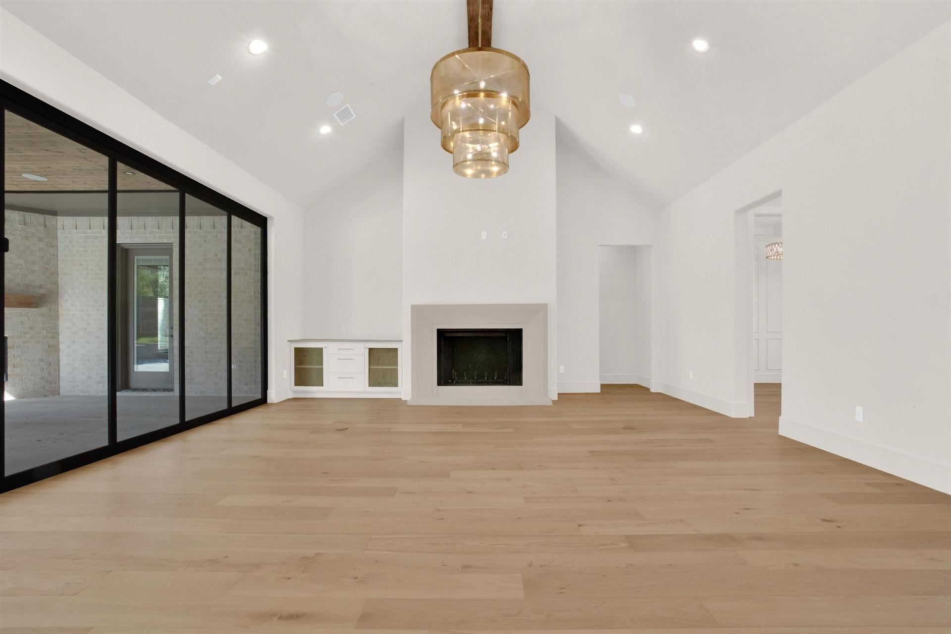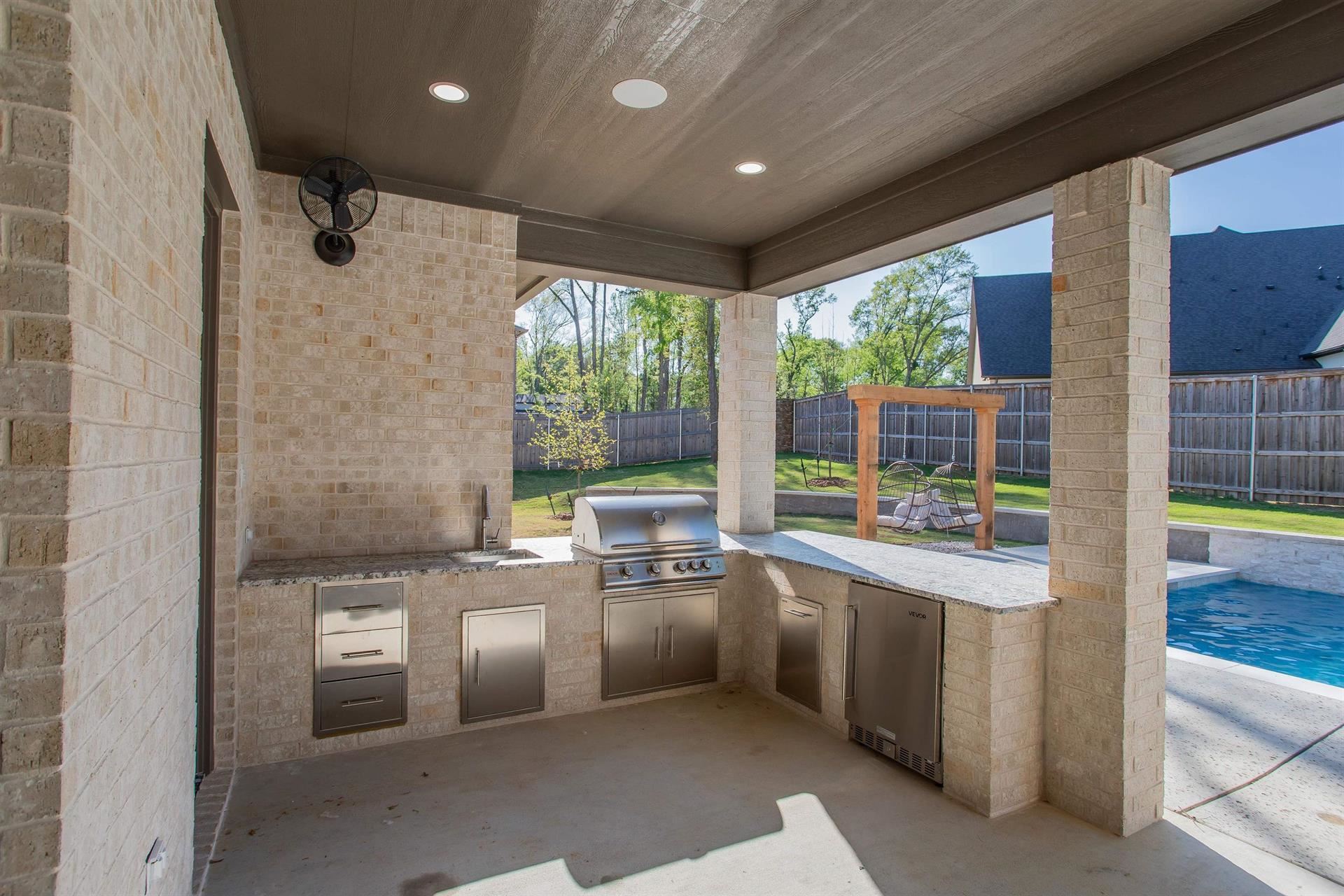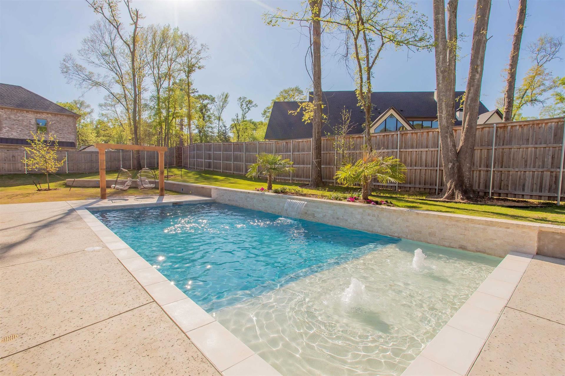 Luxury new construction residence in the prestigious gated community of Sentinel Park at Legacy Bend. This refined expression of traditional luxury offers 5 bedrooms plus a dedicated office, 3.5 bathrooms, with 4,155 square feet of thoughtfully designed living space. A cohesive interior unfolds through custom built-ins, layered lighting, wood flooring, continuous surround sound, and expansive slide and stack doors. The kitchen showcases its beautiful slim shaker 2 tone cabinets, custom vent hood and Taj Mahal Quartzite surfaces that extend from the countertops into a full-height backsplash. The Butlers pantry has a drawer microwave, dedicated freezer space, and abundant storage. The separate dining area is elevated by a built in bar complete with a beverage fridge and ice maker. The primary suite offers a private retreat with elevated finishes, including a makeup vanity mirror, hidden drawer storage, bidet toilet, multi-head shower, soaking tub, and thoughtfully incorporated built-ins. Additional features such as a pull-down third rack system and a retractable central vacuum with vac pan further enhance everyday convenience. Secondary spaces maintain the same level of detail, with custom closet systems, a porcelain slab vanity in the hall bath, and a powder bath with outdoor access and LED mirror. Slide-and-stack doors open to a backyard paradise anchored by a gunite pool. The covered patio features an outdoor kitchen that is fully equipped with a 32' Blaze gas grill, Vevor beverage cooler, and a 2nd fireplace.