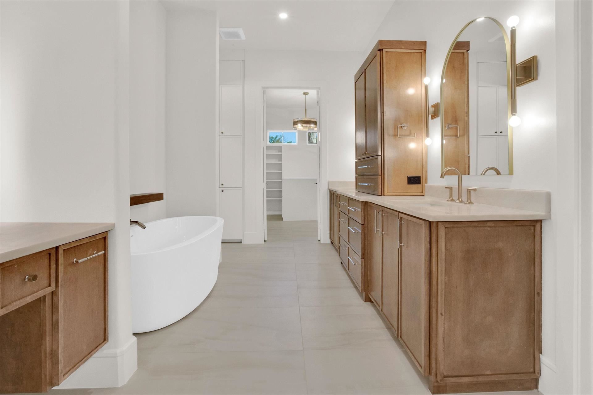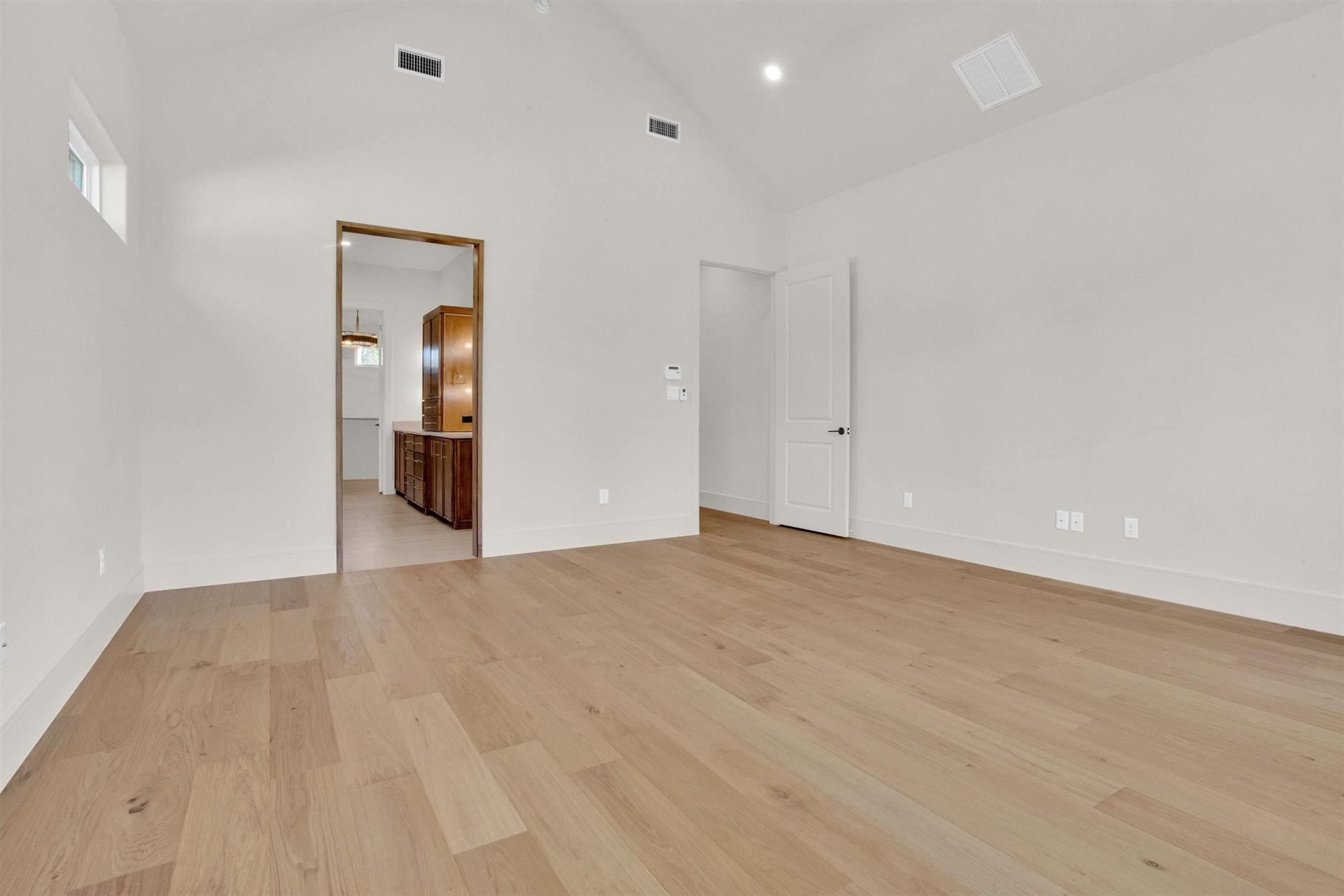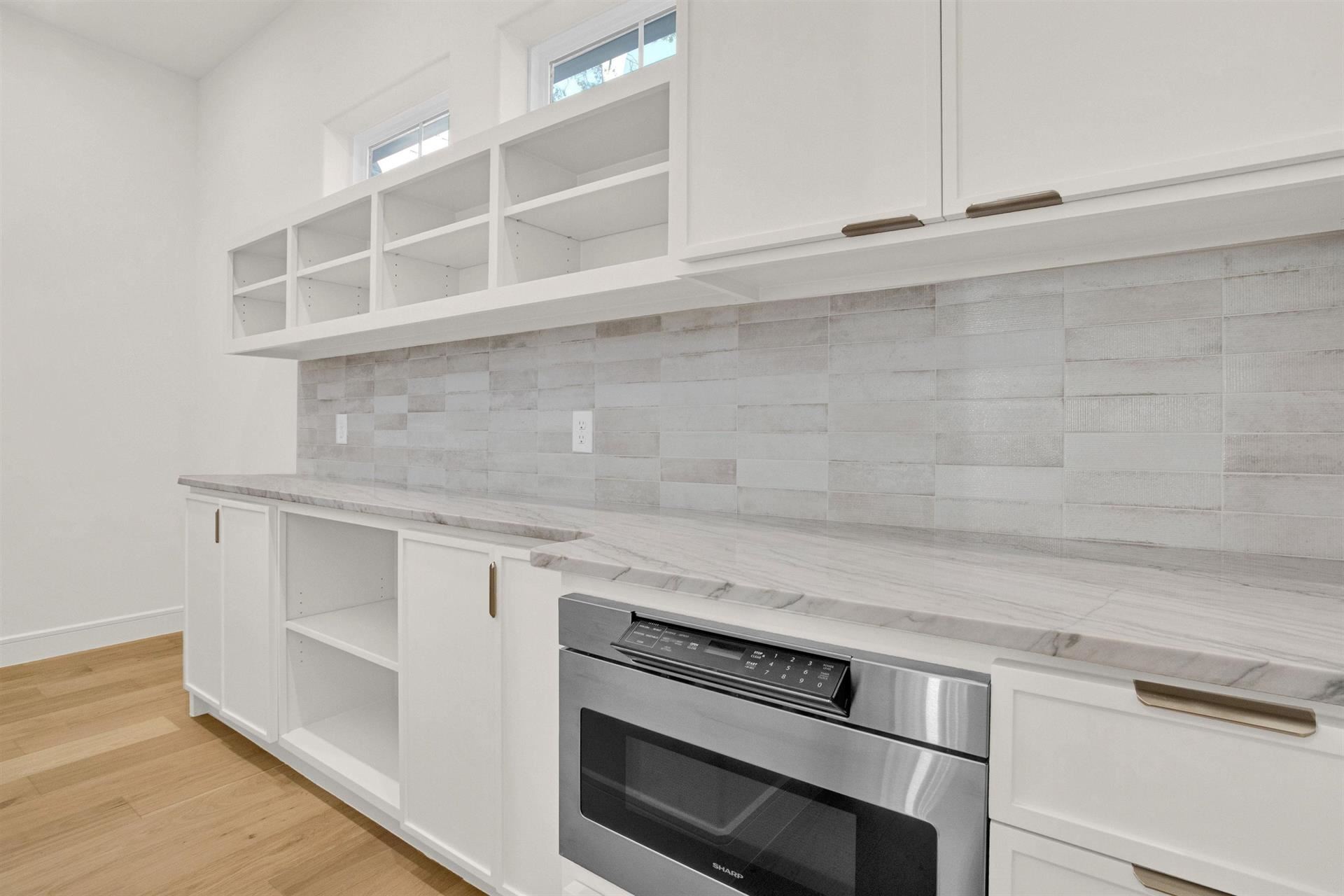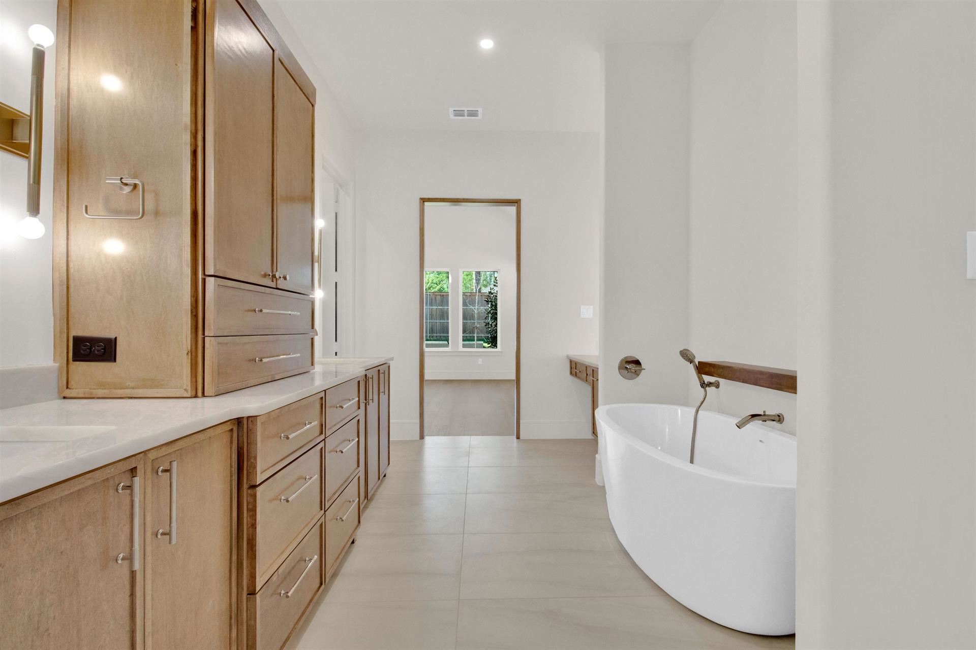 Luxury new construction residence in the prestigious gated community of Sentinel Park at Legacy Bend. This refined expression of traditional luxury offers 5 bedrooms plus a dedicated office, 3.5 bathrooms, with 4,155 square feet of thoughtfully designed living space. A cohesive interior unfolds through custom built-ins, layered lighting, wood flooring, continuous surround sound, and expansive slide and stack doors. The kitchen showcases its beautiful slim shaker 2 tone cabinets, custom vent hood and Taj Mahal Quartzite surfaces that extend from the countertops into a full-height backsplash. The Butlers pantry has a drawer microwave, dedicated freezer space, and abundant storage. The separate dining area is elevated by a built in bar complete with a beverage fridge and ice maker. The primary suite offers a private retreat with elevated finishes, including a makeup vanity mirror, hidden drawer storage, bidet toilet, multi-head shower, soaking tub, and thoughtfully incorporated built-ins. Additional features such as a pull-down third rack system and a retractable central vacuum with vac pan further enhance everyday convenience. Secondary spaces maintain the same level of detail, with custom closet systems, a porcelain slab vanity in the hall bath, and a powder bath with outdoor access and LED mirror. Slide-and-stack doors open to a backyard paradise anchored by a gunite pool. The covered patio features an outdoor kitchen that is fully equipped with a 32' Blaze gas grill, Vevor beverage cooler, and a 2nd fireplace.